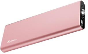 淡いピンクのアルミ製ボディがかわいらしい印象の厚さ12mm薄型モバイルバッテリー。
